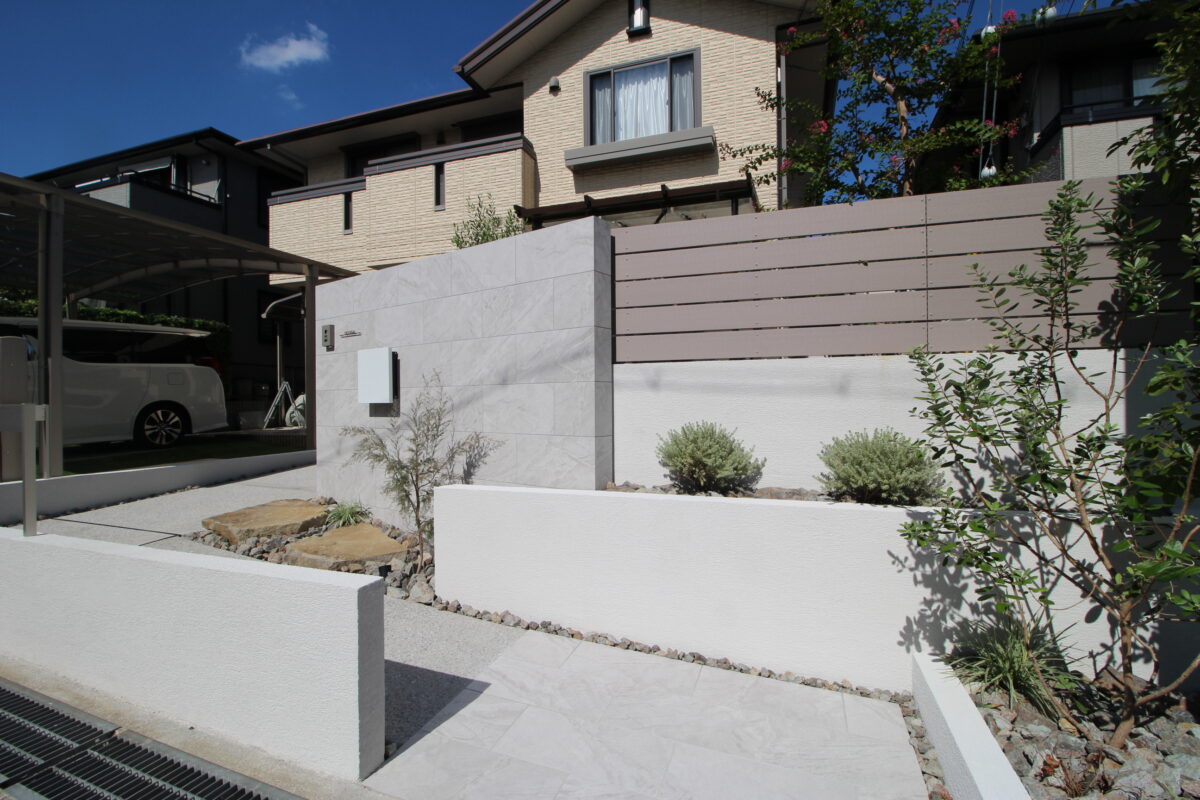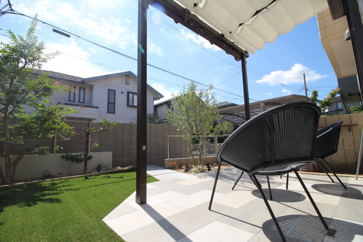 タイルデッキにはタイルを同シリーズから3色をチョイスし 建物の外観と調和するシンプルかつ スタイリッシュなデザインに仕上げました