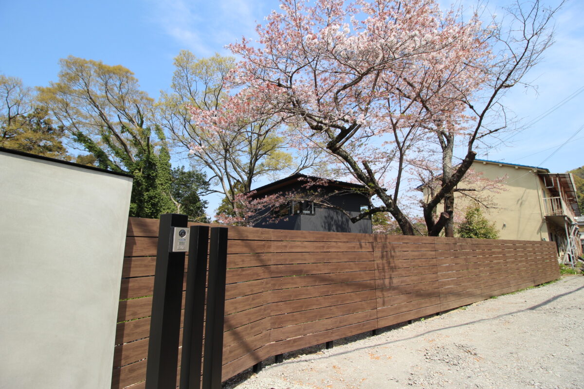 既存の桜の木を主役に据えたエクステリアデザインを採用